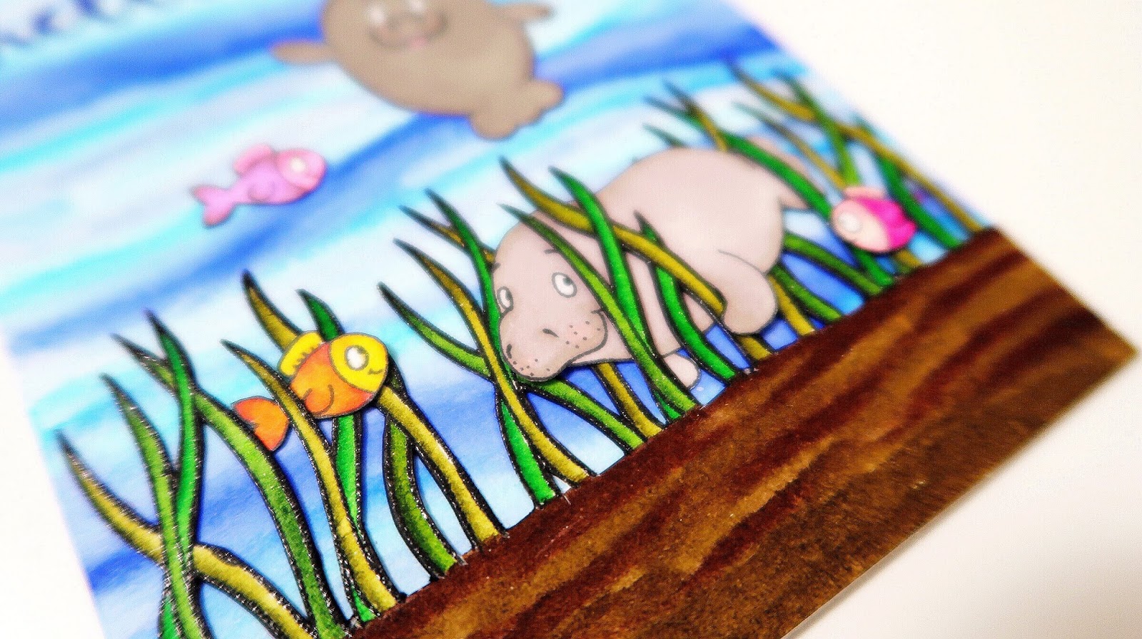 Hi all! I'm stopping by today to share a fun card with you. To be honest, I wasn't sure what I wanted create at first. I actually stamped all the little manatees and colored them in, not knowing. Eventually, I thought an underwater scene would be perfect for them and I ran with that idea.