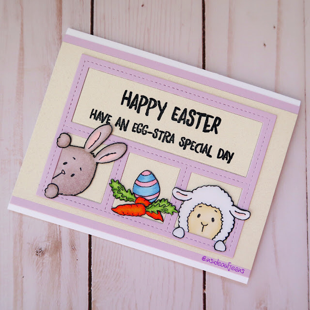 Hey there! Today I'm sharing another card using the Peeking Easter Friends. I still can't get over how cute this set is and I just want to take advantage of the animals peeking, so I used a die cut that had some borders for peeking purposes.