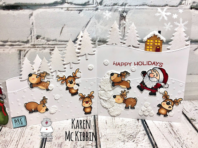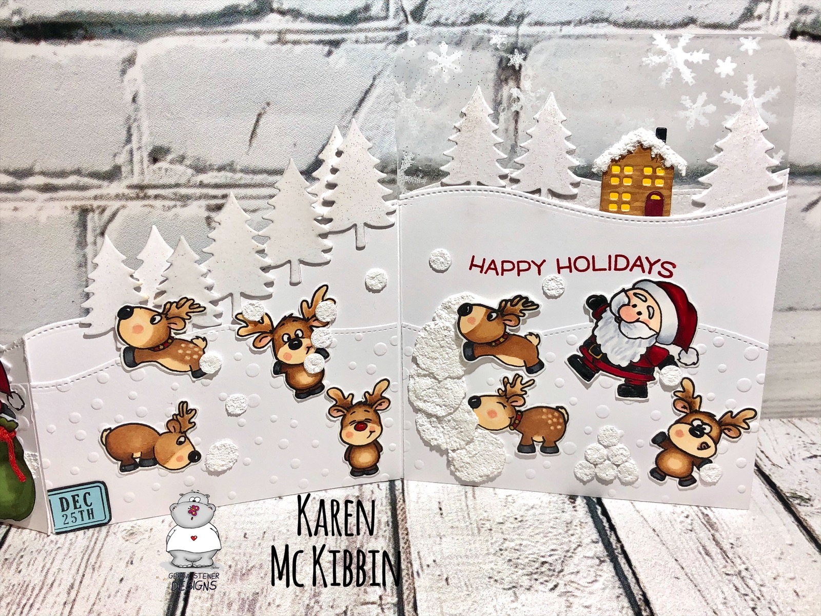 This card is fantastic! I love the idea of Santa and the reindeer having a snowball fight! Great job!
