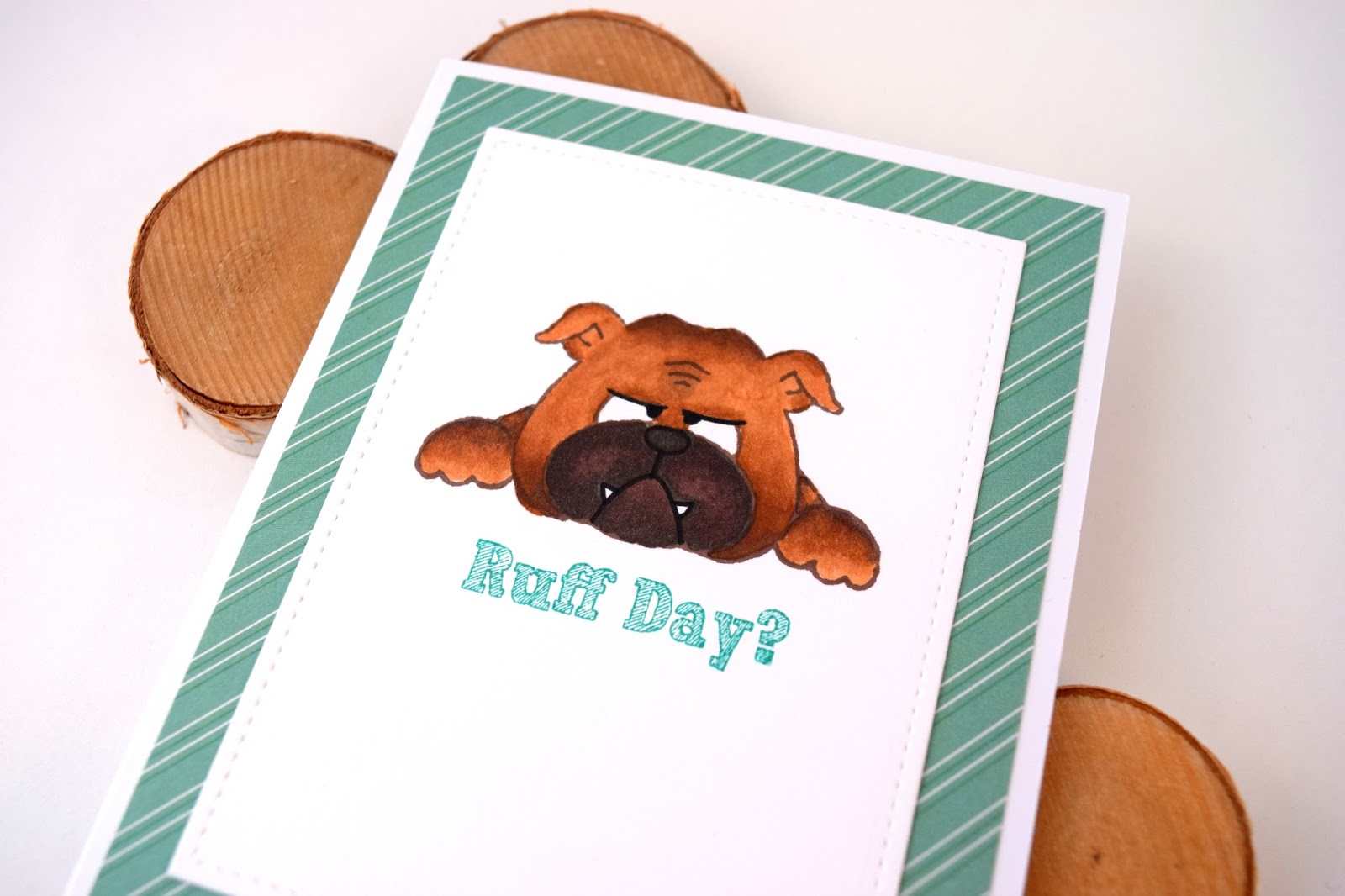 Hello crafty friends! It's Jess from JessCrafts.com. Today I am sharing a card made with the Howl Are You? clear stamp set. I just had to color this super grumpy little bull dog. I plan on sending him in a sealed envelope with instructions to save for a bad day. Then they can open this card and have a a little surprise inside to cheer them up. For more on the coloring check out the video: