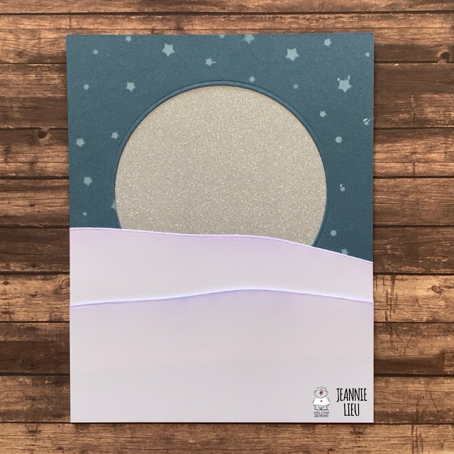 circle in my snowy background panel and added some silver glitter cardstock behind so I could spotlight Santa.