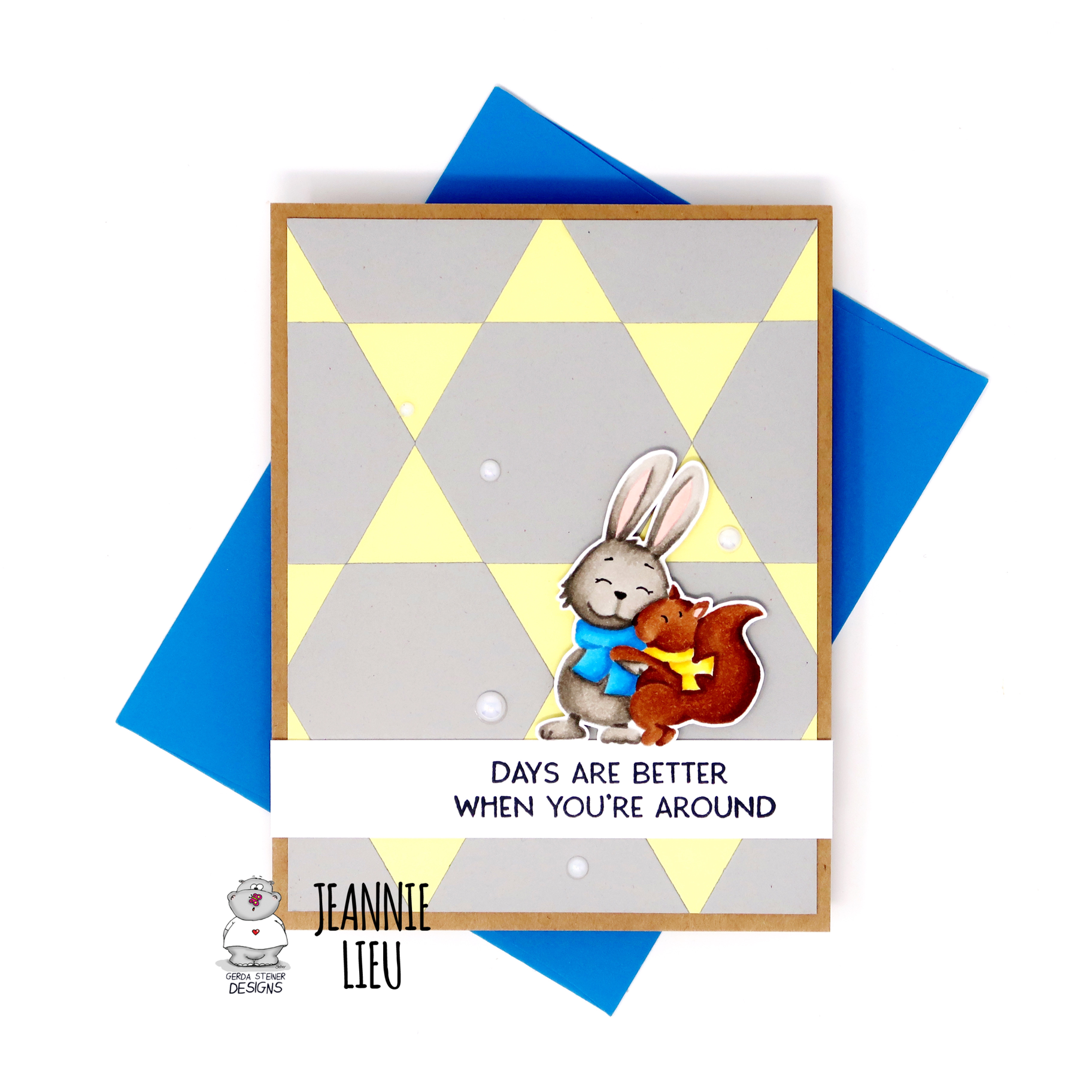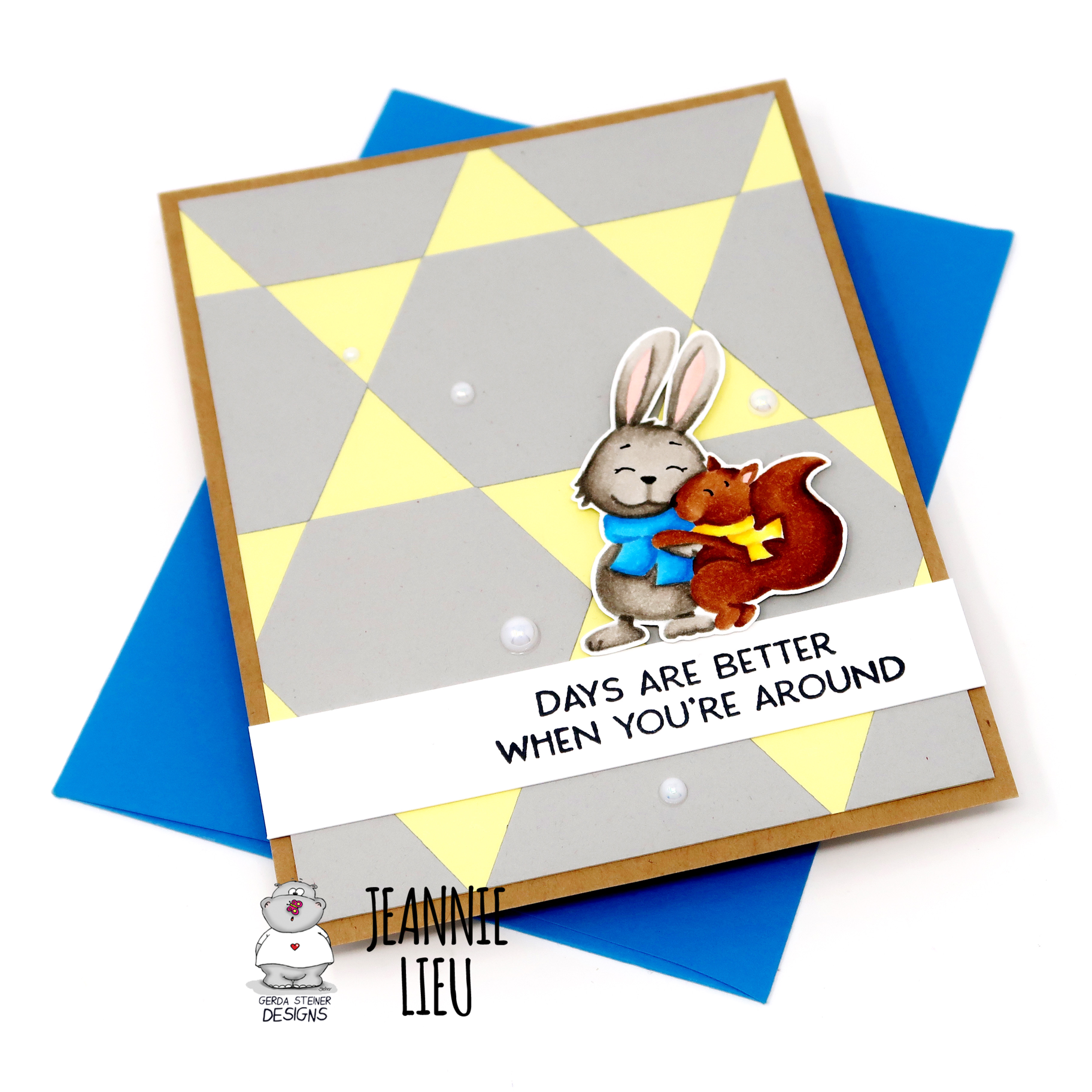 Hi everyone! Happy New Year! It’s Jeannie (InsideoutJeans) on the blog today with Gerda Steiner Design’s stamp set named, Sending Hugs. I wanted to use a winter set since it's still winter and in my area, it's been pretty cold. These images are super cute in this set and I thought it would be perfect to kick off the new year with this duo.
