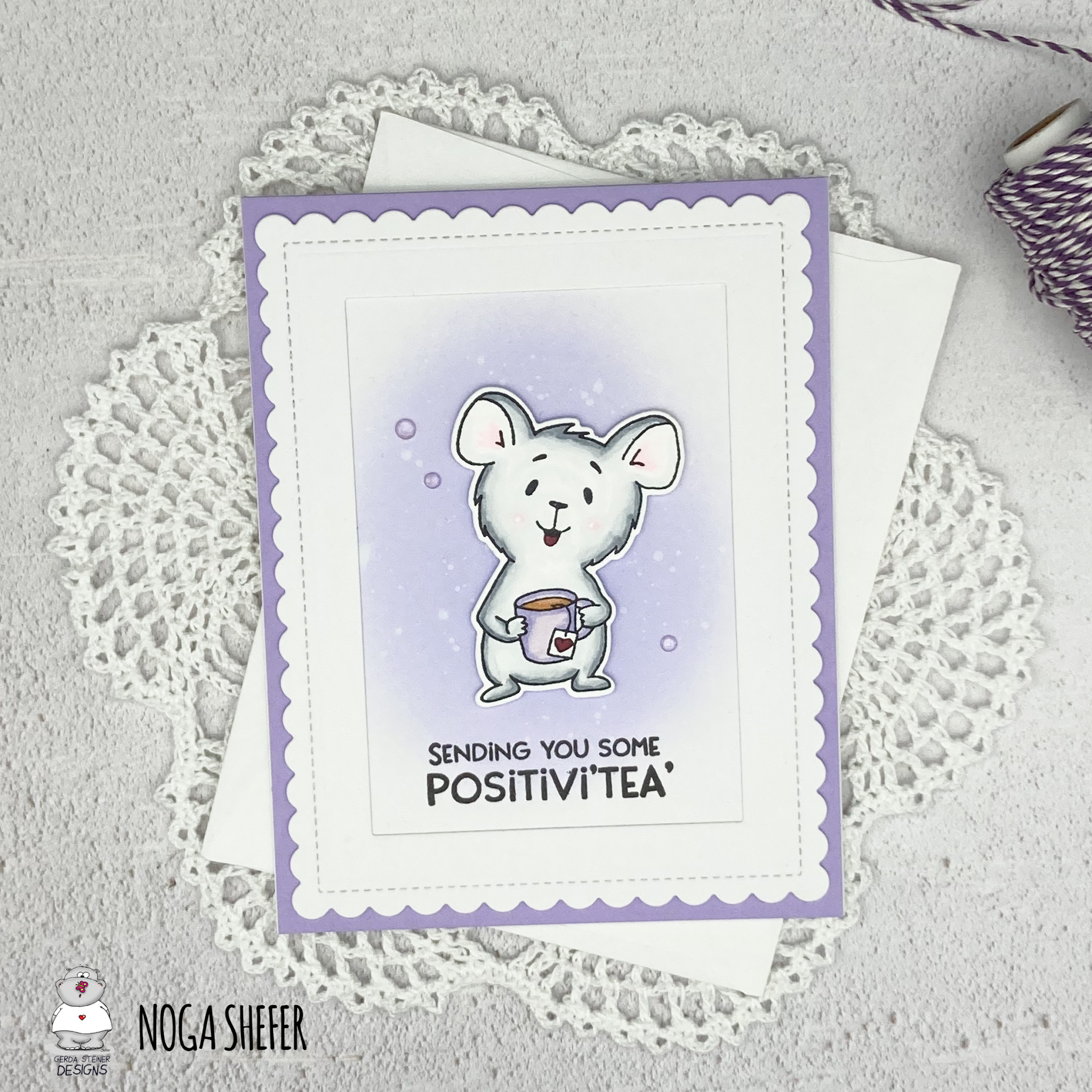 My card featuring the adorable Positivi-Tea 4x6 Clear Stamp Set stamp set. How cute is this mouse??
