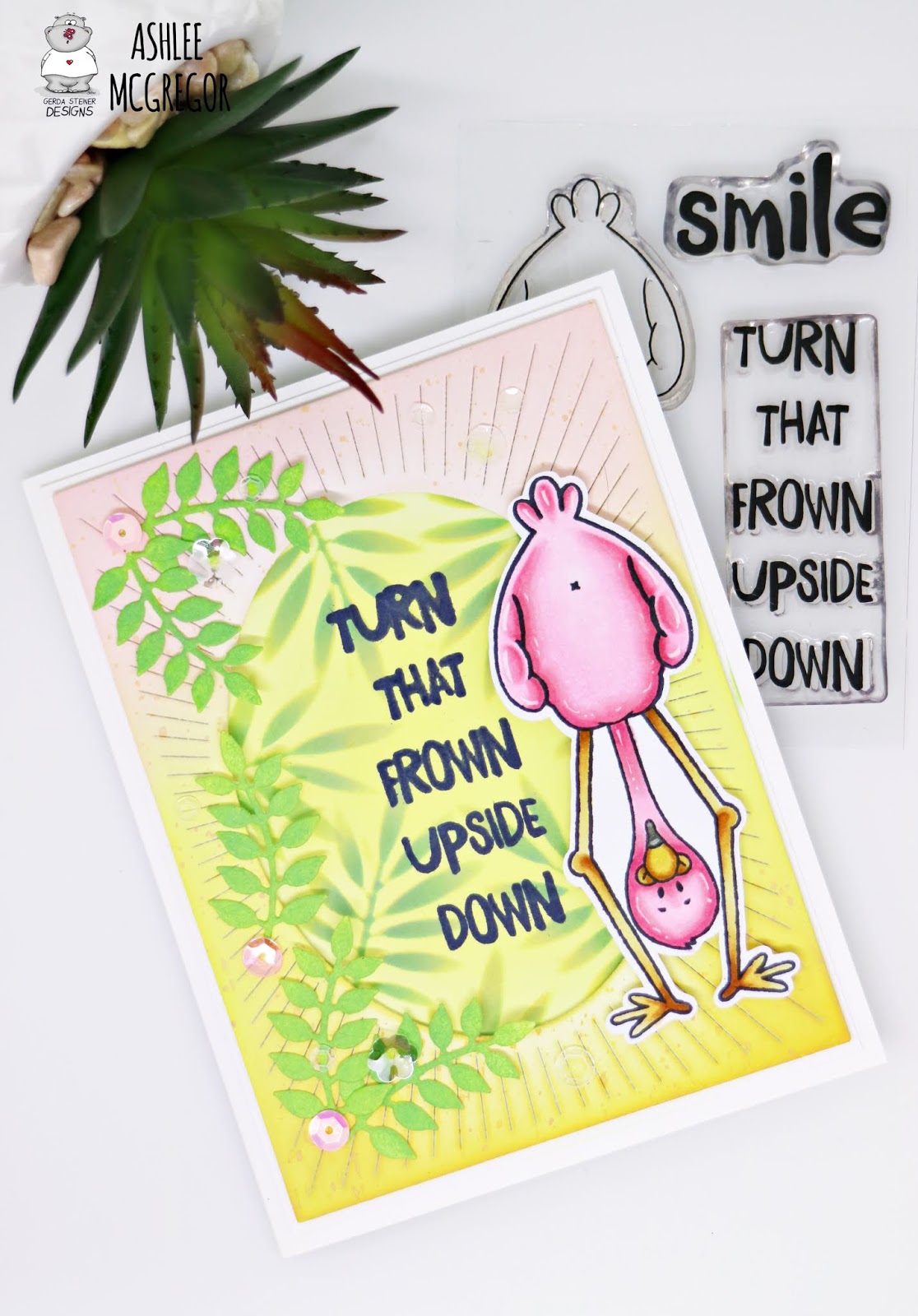 "SMILE" and "Turn that frown upside down" which both suit this fun flamingo perfectly!!