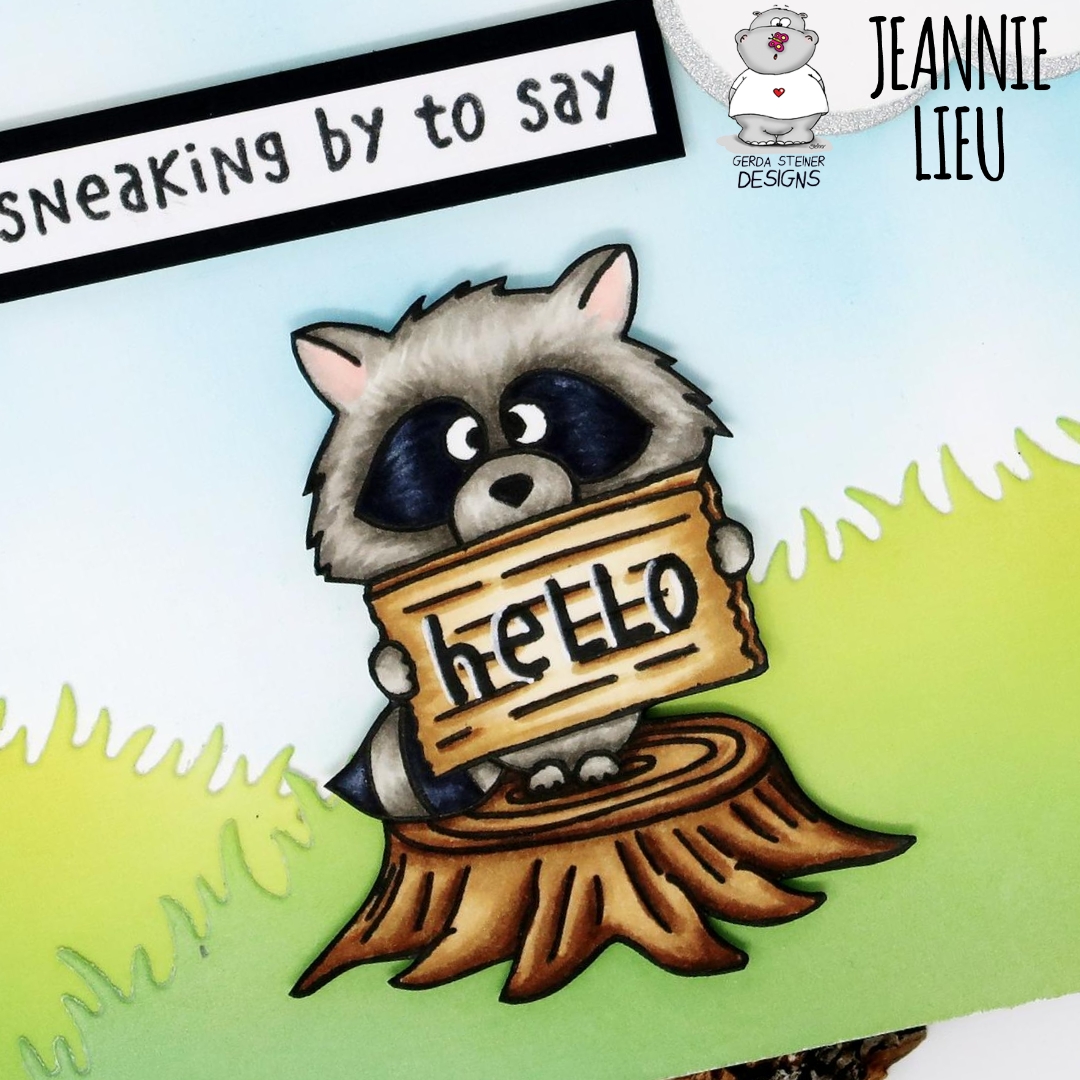 Hi everyone! It’s Jeannie (InsideoutJeans) on the blog today to share a sneak peek into a new stamp set by Gerda Steiner Designs. This new set is called Sneaky Raccoons and it is adorable! There are quite a few images in this set but one of my favorites is the one I'm using today.
