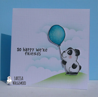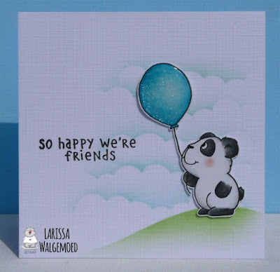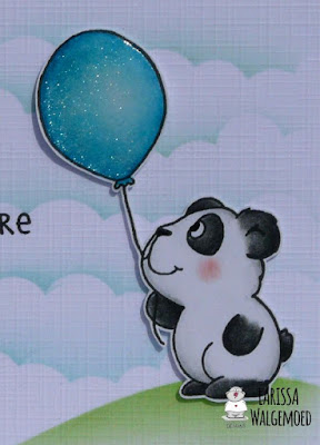 On a white card I added a couple of clouds with the Mini cloud edges stencil from My favorite things and Tumbled glass distress ink. I made a little hill for my panda with the