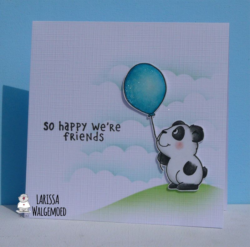 Lovely panda's from Gerda Steiner designs. I have coloured the panda with my Polychromos pencils and the black glaze pen. I coloured the balloon with the Clear Spectrum noir sparkle glitter pen and then I applied