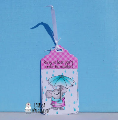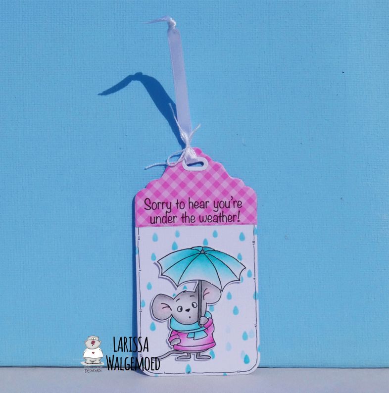 Classic gingham paperpack from Sunny studio and glued it on the tag. With a black fineliner I doodled lines on the tag. On the white part of the tag I have made rain with the