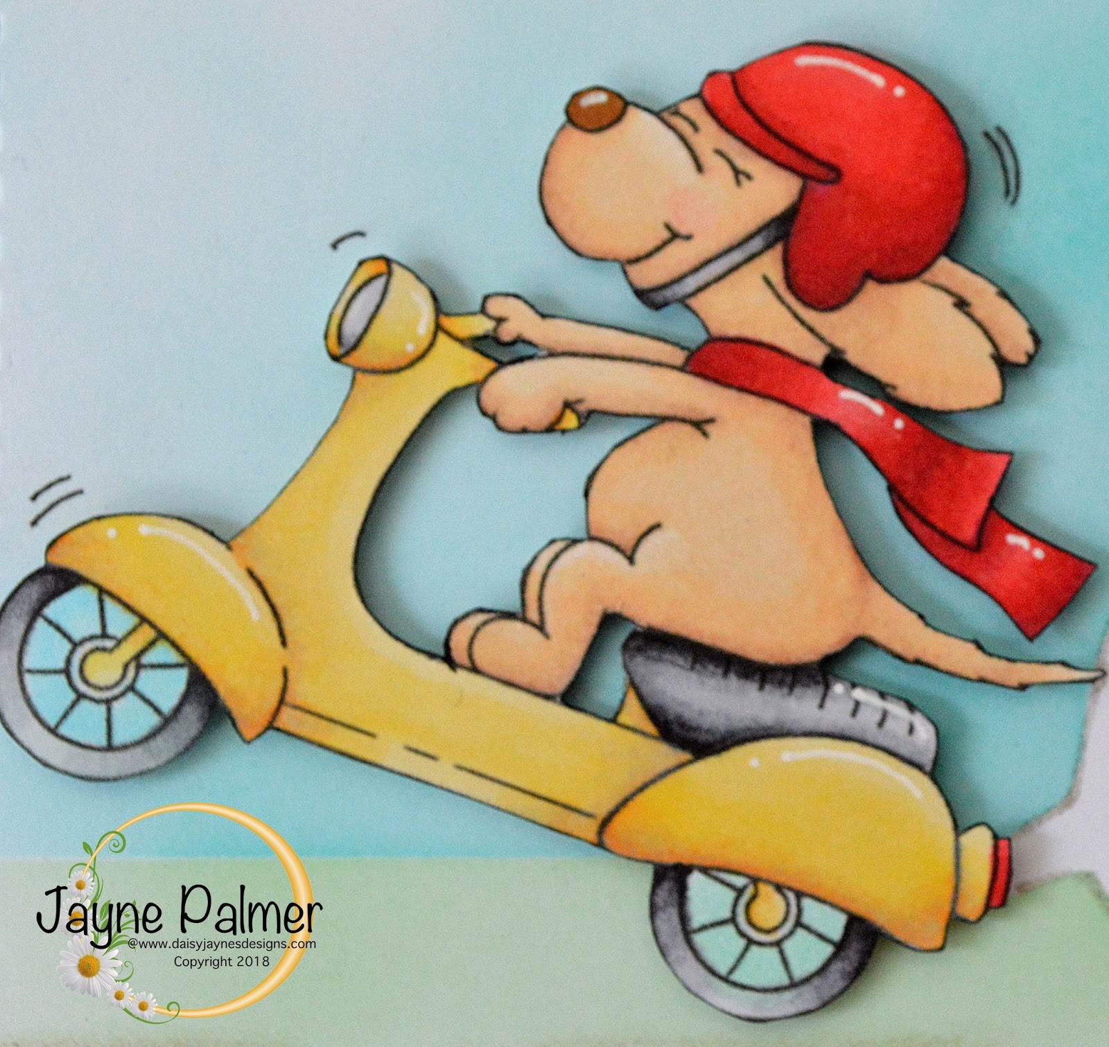 Today I am sharing with you a card featuring a new stamp set called Dog on Scooter. I couldn't resist making him a little reckless because he was going so fast and looked so happy !!