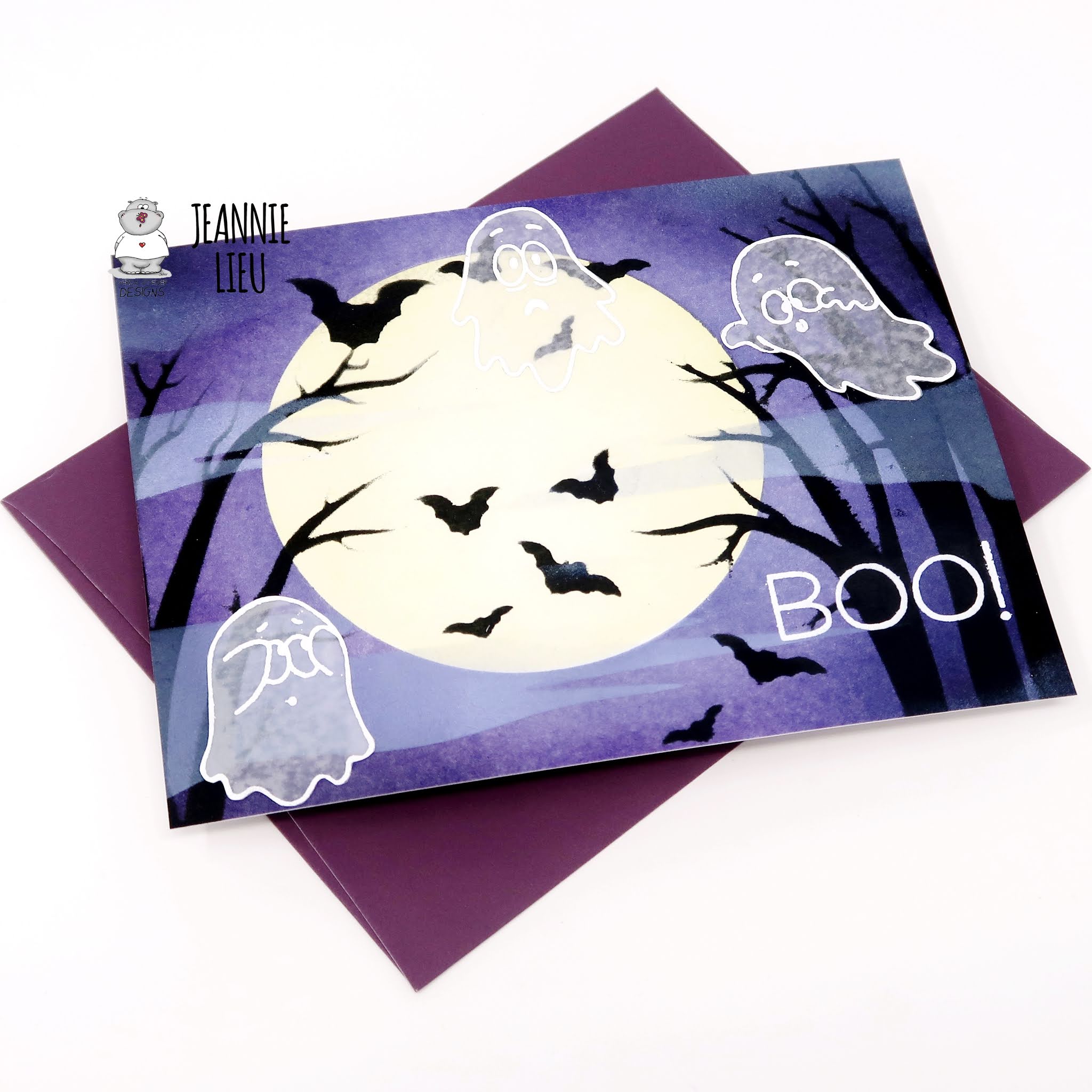 A month ago, I used the same Ghosts stamp set to create a flashlight card. If you missed it, stop by to check it out as it comes with a video as well.