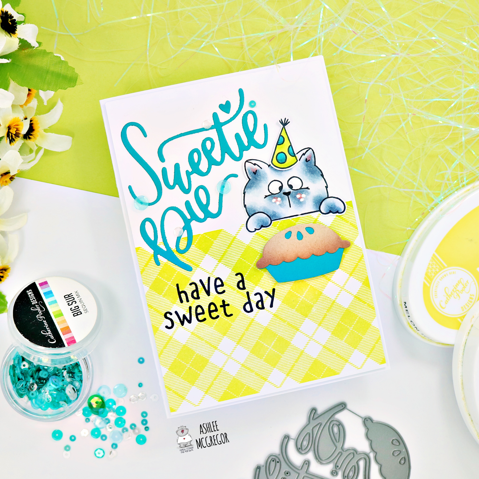 I added the die cut sentiment and pie from MFT Sweet as pie and then stamped on the sentiment "Have a sweet day" from the on the table set with Memento tuxedo black ink...