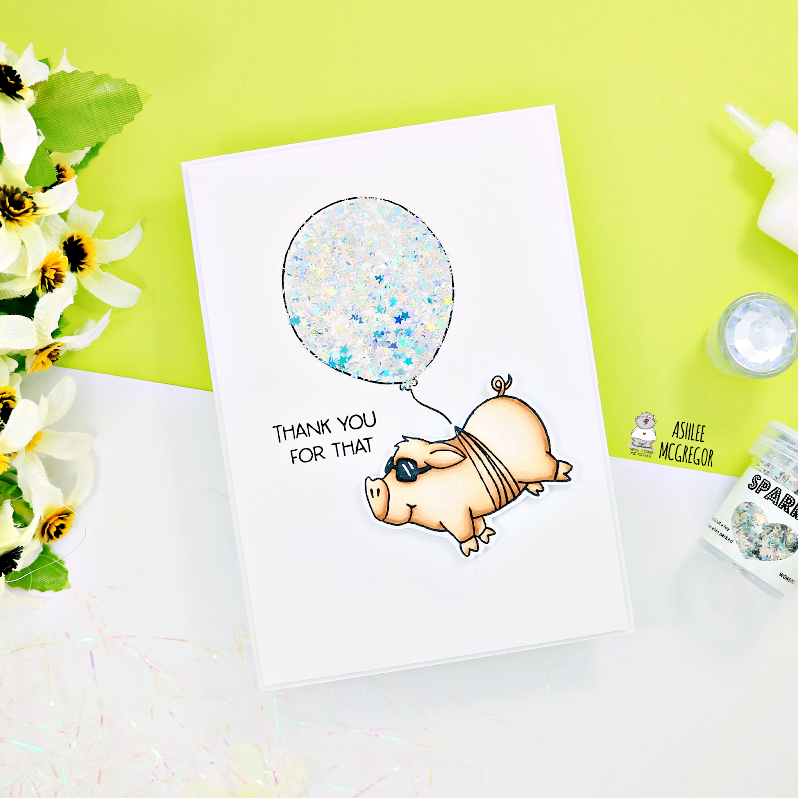 Using a black pen I added in the balloon string to attach the balloon to the piggy!!