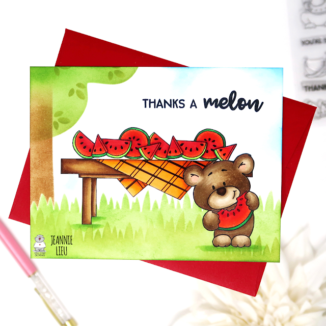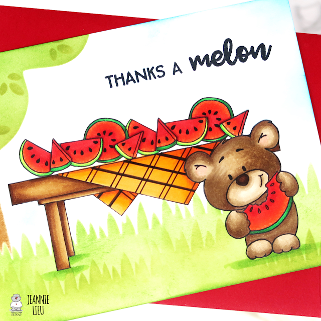 Hi everyone! It’s Jeannie (InsideoutJeans) on the blog today with Gerda Steiner Design’s stamp set named, Melon Friends. It is such a cute summery set that I just thought it was perfect for a picnic scene.