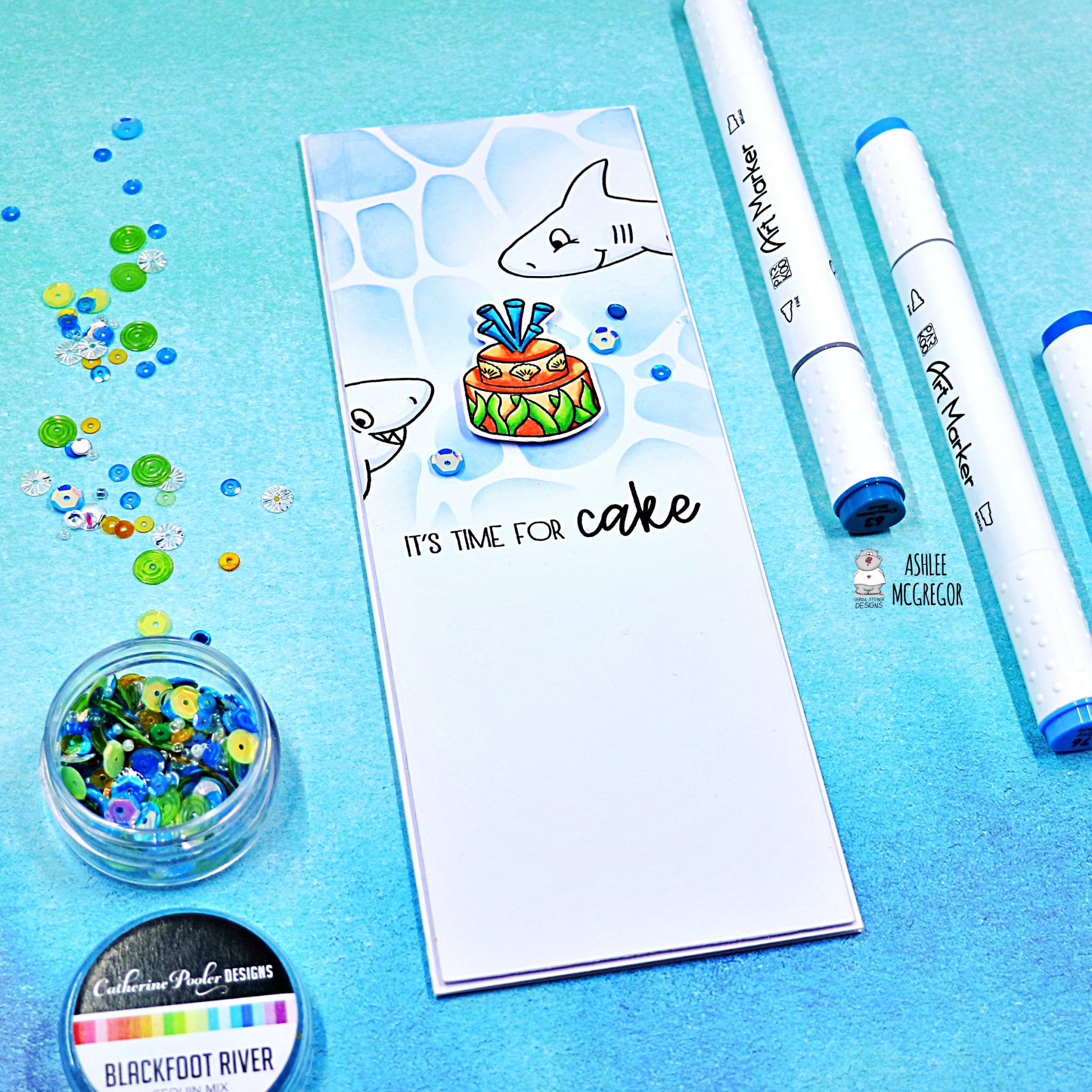 Ashlee here, I have an underwater theme slimline card to share with you all today featuring the stamp set "Big bite"...