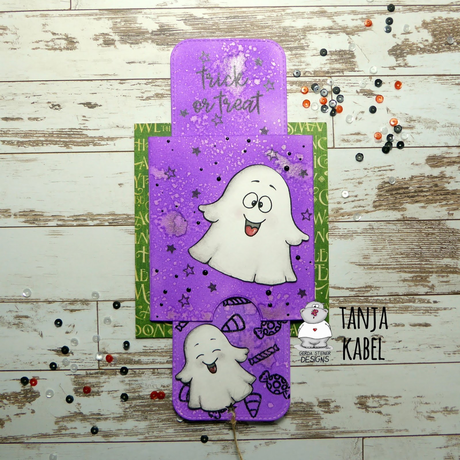 it's Tanja here and I created this double slider card using the Gerda Steiner Designs A Boo for you stamp set: