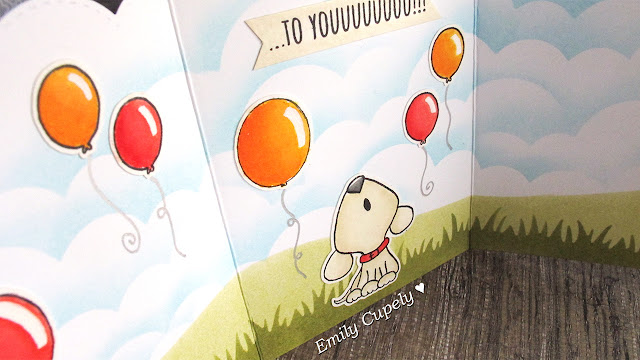 Hi guys, it's Emily Cupely here!! I hope you are having a great Spring break! I finally had some time to make a tri-fold card with some masking and stenciling. I think the final card turned out beautifully, specially the inside part where I decorated all three panels instead of just the central one. All the stenciling along with the adorable puppies from the Howl Are You stamp set and the pop of color in the balloons will hopefully have a nice impact in the recipient :) I hope you all enjoy the video as much as I enjoyed making it!