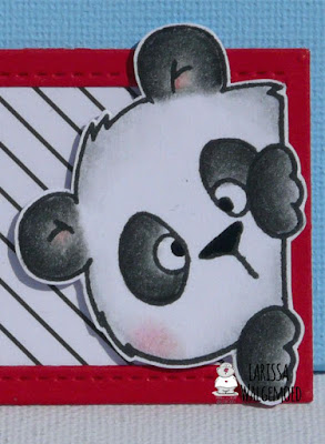 Do what you love- Pretty paper bloc from Marianne design. I glued the red tag on top of the tag wfrom striped paper. I glued the panda with foamtape on the tag. Then I stamped a sentiment from the set