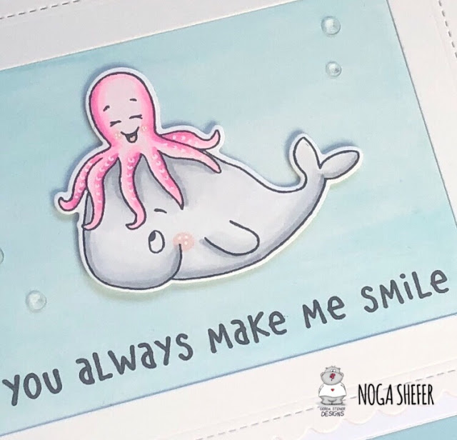 My card featuring  A Whale of a Time 4x6 Clear Stamp Set  and  A Whale of a Time 4x6 Die Set. I would like to make a fun card with those adorable critters.