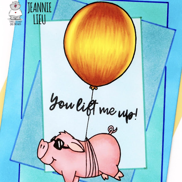 Hi everyone! It’s Jeannie (InsideoutJeans) on the blog today a fun new card with one of the newer Gerda Steiner Designs stamp set named You Lift Me Up. I laughed when I first saw this card and thought it was such a fun one. How many of us have said the phrase "when pigs fly"? I know I have.