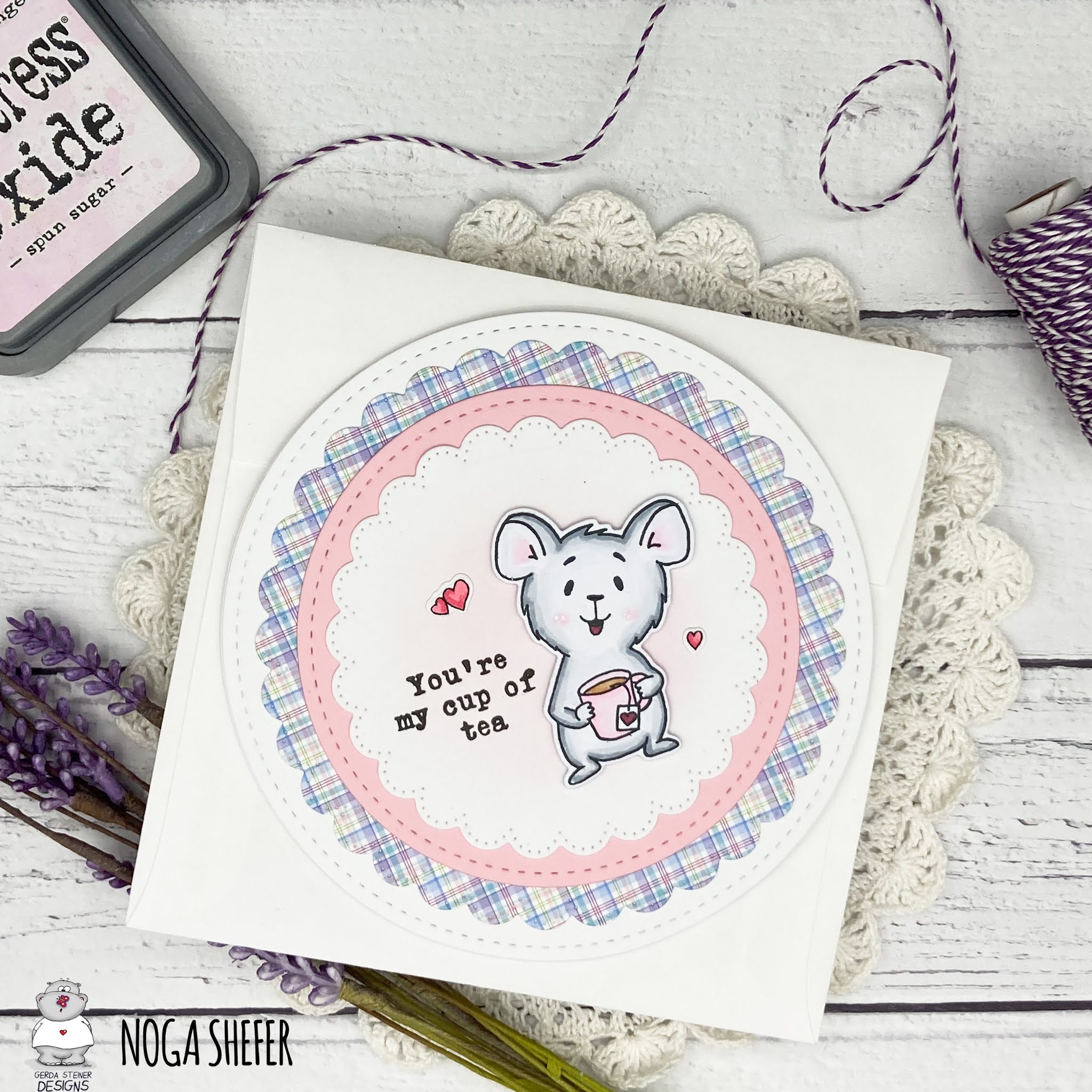 My card featuring the adorable Positivi-Tea 4x6 Clear Stamp Set stamp set. How cute is this mouse??