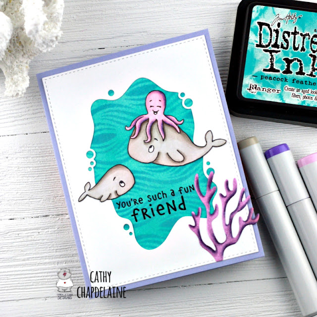 Happy Friday everyone! It's Cathy here sharing a card today using the new A Whale of a Time stamp set.  How funny is that little octopus?! I just love their expressions!