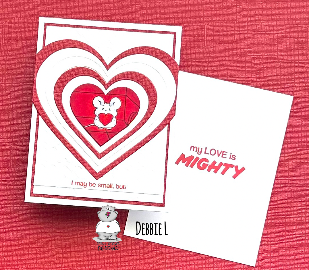 I like to use the "insert - shape" option to make a card front shape to size my images before printing. This one was sized for a minislim 5.25"x3.5". I then added some heart shapes in the empty spots and my text in the signs.