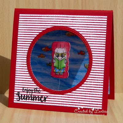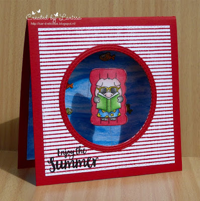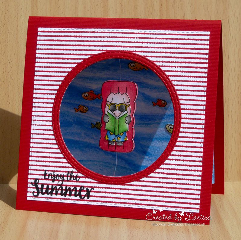 My card is a spinnercard. I stamped the air matress and the reading piggy from the set