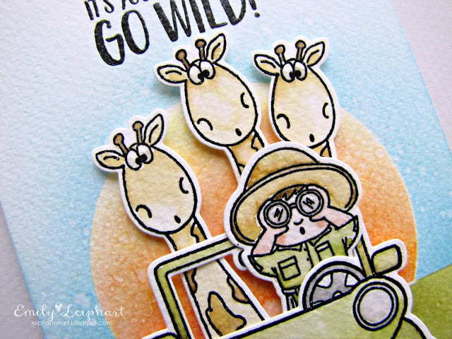 it's Justine again and I'm back guest designing for Gerda Steiner Designs. I just love these critters! They are too adorable and I had this funny image in my head of the animals car-jacking the safari vehicle and leaving the guide behind so this is what I created with my Copics and the Go Wild Stamp Set. I'm am also giving away a Go Wild Stamp away on my Blog!