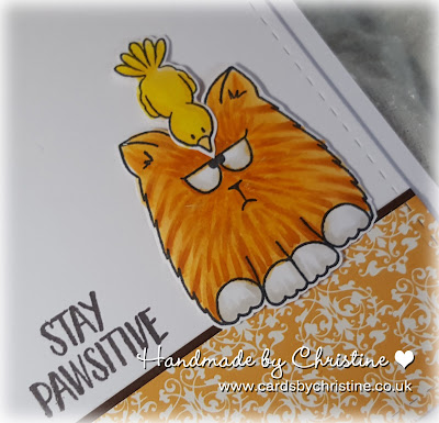 Christine here today - to share a card I made with the fabulous All Cats Stamp Set. The set has three cats and a little bird in all - with fabulous sentiments too!