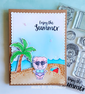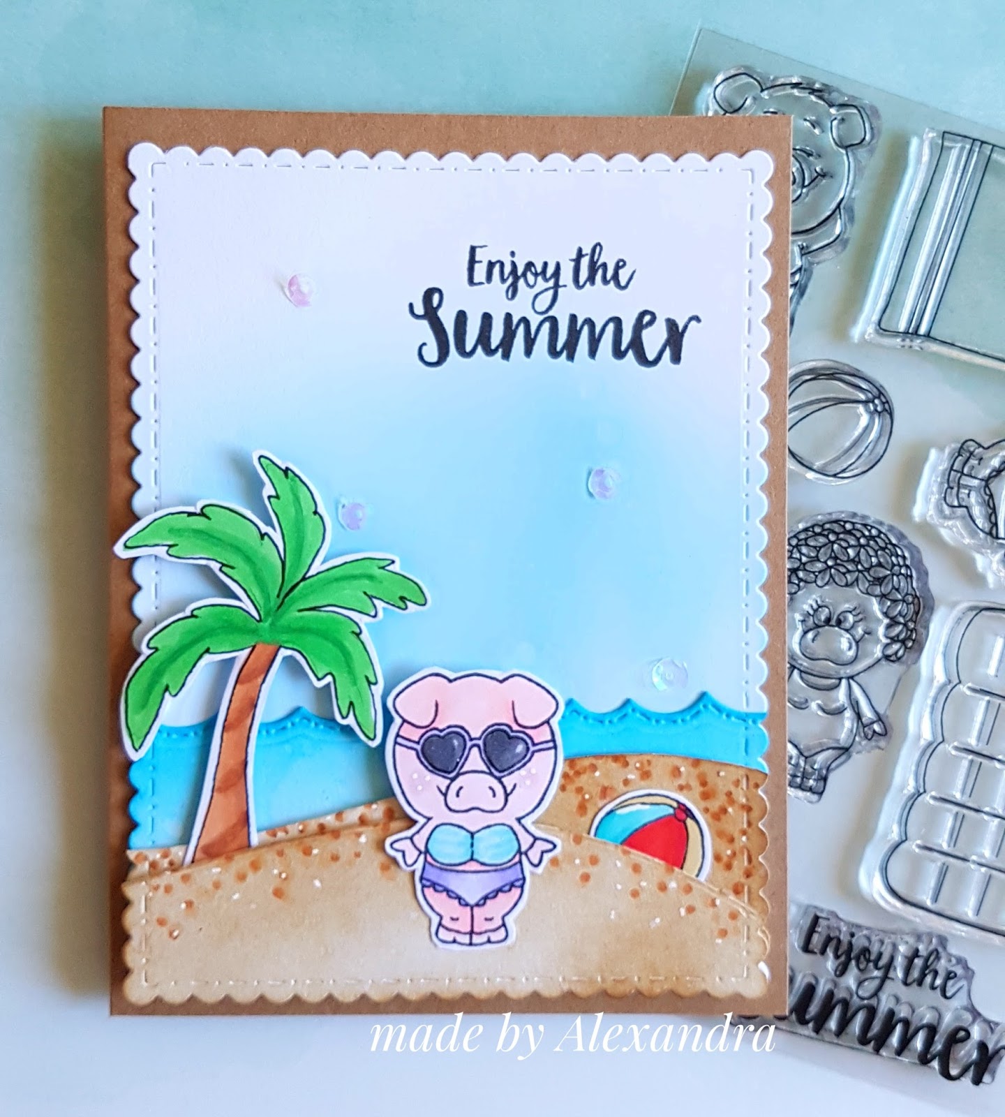 For this card i started by inking the background using Salty Ocean distress ink and that is my sky! Next i die cut the ocean waves and the sand borders and the inked them using Mermaid lagoon distress ink and Vintage photo distress ink for...
