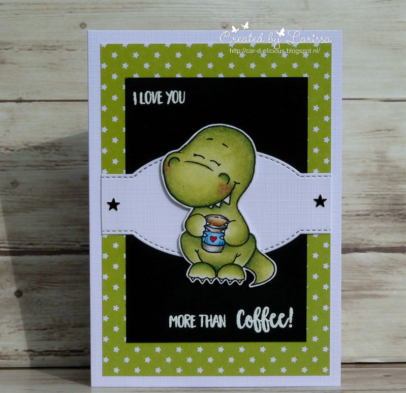 Kamila here from Life in Moments and today I have for you a fun and colourful interactive card using the super cute Coffeesaurus stamp set. I love creating this card, I wanted it to be colourful and fun! The dino image is adorable and I love how he wobbles all over my card front :) I did some ink blending on the background with fun summery colours and I sprinkled some simmery...