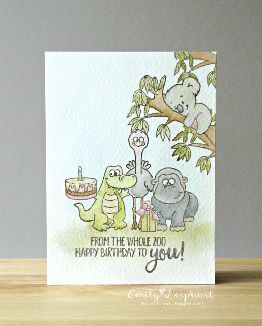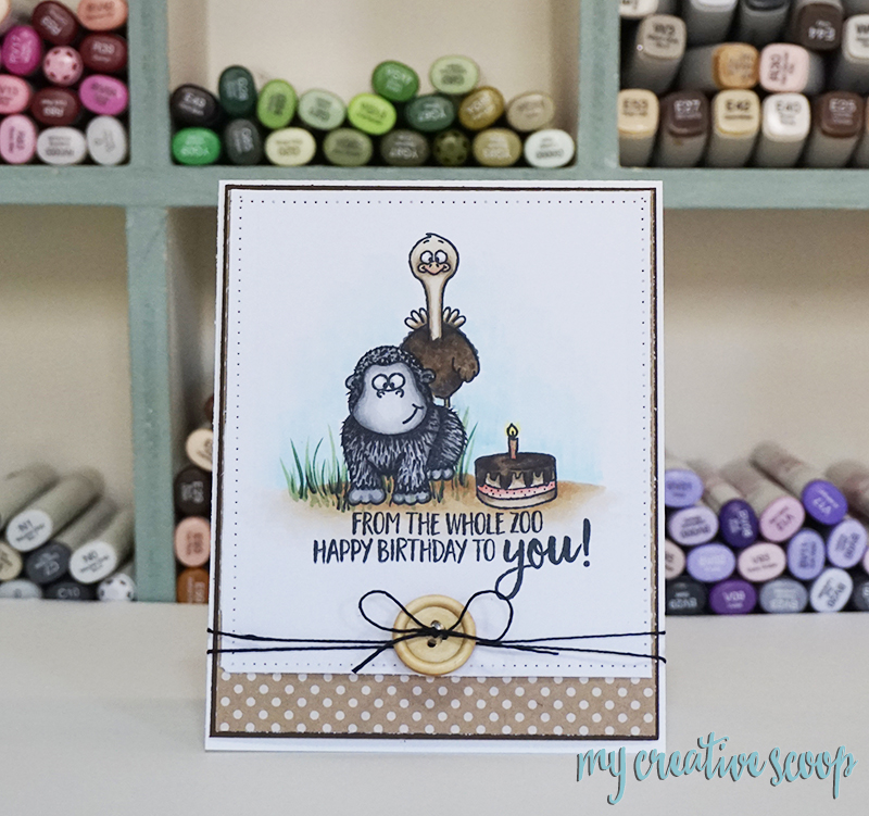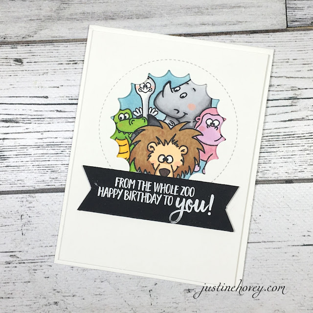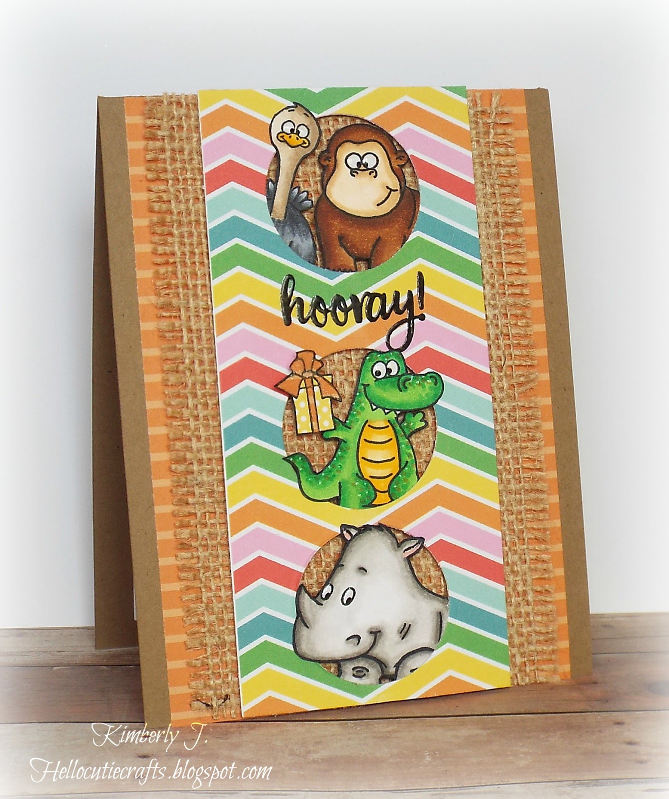 Here is the happy colorful card I made, a very happy birthday from the whole zoo!!