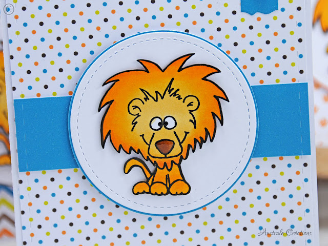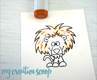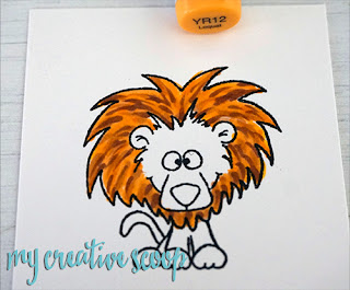 I colored the stamp with copic, and applied the eyes on the Lyon...
