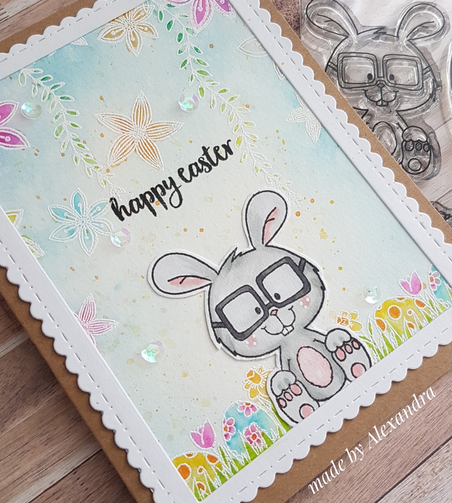 Alexandra here today sharing an Easter card that I made using Nerdy Easter bunny stamp set .