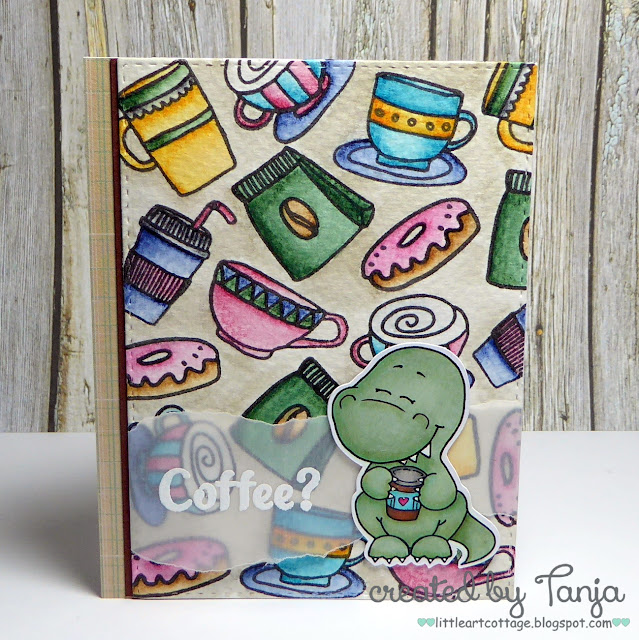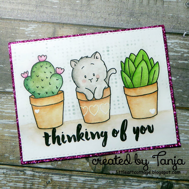 I have colored the images and the shadow with Copic Markers. As background I used a Design Paper and the blades of grass are die cutted. The Sentiments are stamped with Memento Dew-Drop Chalk Ink. For positioning I used my MISTI Stamping Tool. And finally I...