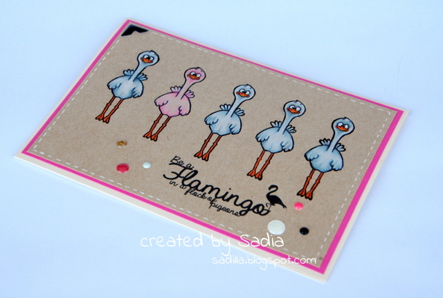 Good morning peeps! here I am again, with my second card... made with Party Animal clear stamp set... I loved it!! It's a very simple card, but I love coloring on craft, and I love flamigos!! =D