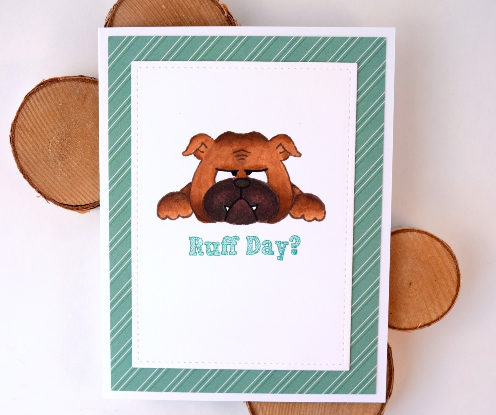 Hello crafty friends! It's Jess from JessCrafts.com. Today I am sharing a card made with the Howl Are You? clear stamp set. I just had to color this super grumpy little bull dog. I plan on sending him in a sealed envelope with instructions to save for a bad day. Then they can open this card and have a a little surprise inside to cheer them up. For more on the coloring check out the video: