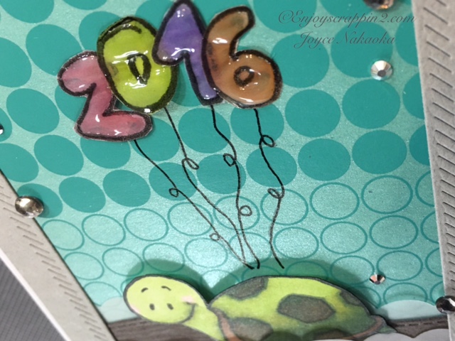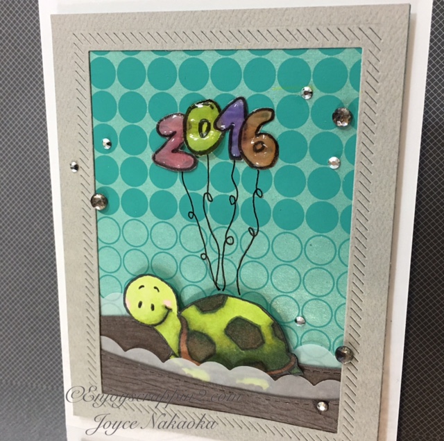 Happy New Years everyone!! This is Joyce from http://enjoyscrappin2.com and I've made a New Years card for you. I've use the Late but with love stamp set and made the numbers into balloons using some vellum. I've colored the vellum with Gelatos but you can easily color with any medium that you choose. I've stamped out the Turtle and colored him using my Copic markers. I...