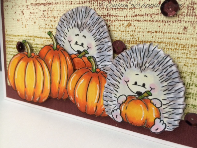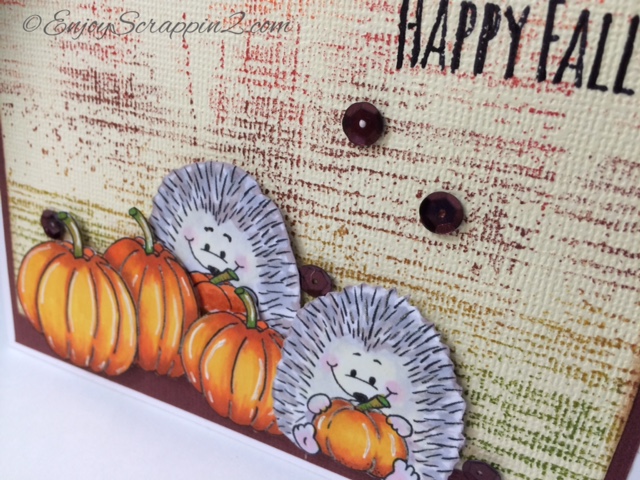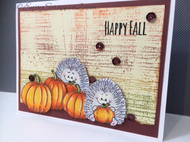 Aloha Guys! This is Joyce from Enjoyscrappin2.com and today we'll be making a fall card. I'm using 2 digital images, Hedgehog with Pumpkin, Halloween Cats and more along with the Happy Fall Clear stamp set. I picked out the pumpkin from the digital image and I resized them to all look different. That's the cool thing about digital stamps :) I also printed 2 of the...