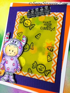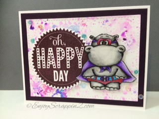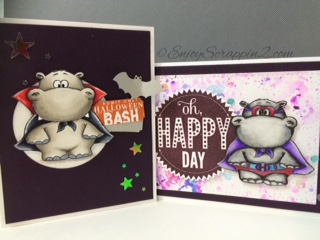 This is Joyce from EnjoyScrapin2 and today I have 2 cards for you. One is a Halloween card and the other is a all occasion card. I love this stamp set, Hippo in Disguise. I love changing his outfits for a different look, I think it's super cute. I colored him many different ways, which I show in the video. I hope you like this card and I hope to catch you next time. Please check out...
