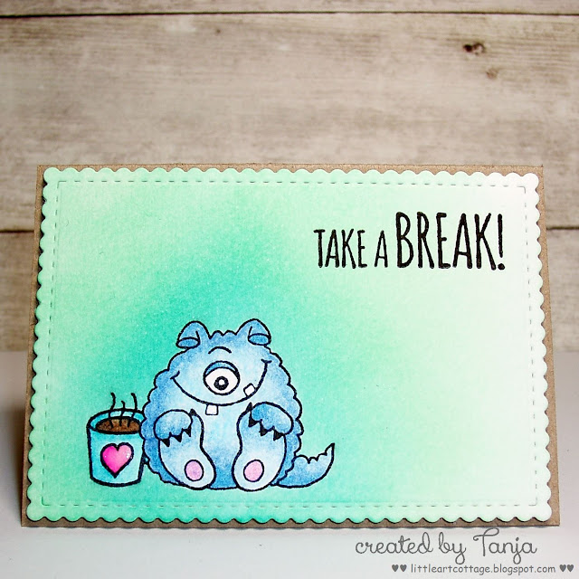 Hi everyone, I'm back with another fun card featuring the monsters. As I threatened you with, you will be seeing some more cards with this stamp set in the future. I love monsters, and these are just the cutest :-)