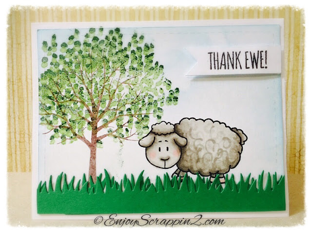 Aloha Guys! This is Joyce from enjoyscrappin2.com and today I'm excited to share this card I made using the How Are Ewe stamp set. Gerda always comes up with super adorable images that can be used for many different occasions! I made a simple background for my sheep today and I used copic markers to color in my sheep. I hope you enjoyed this card and thank you so much for stopping by.