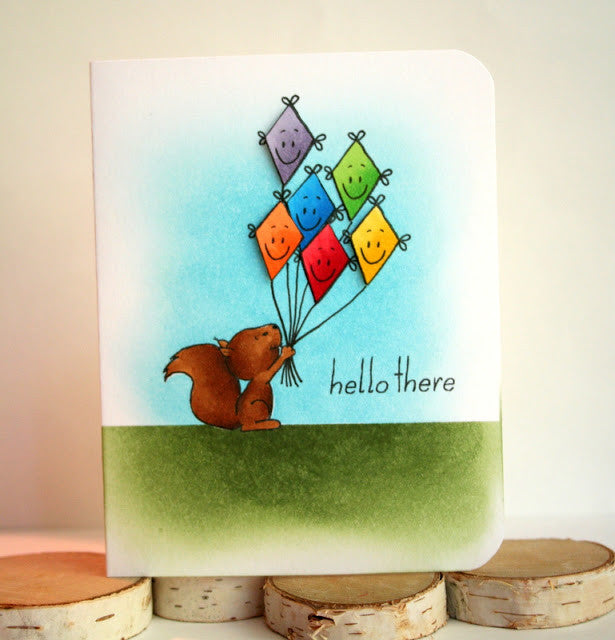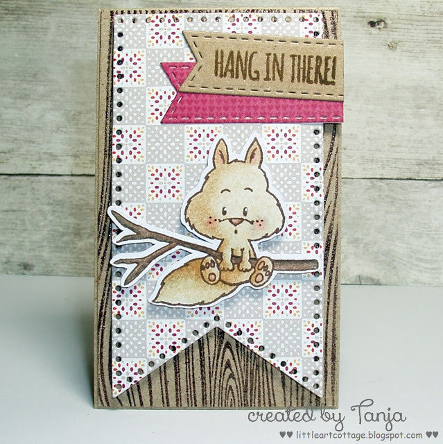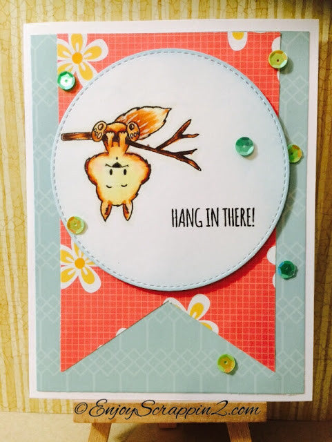 Make an encouraging card with the "Hang in There" sentiment and you can use the hanging squirrel stamp upside down or the other way.  The hanging squirrel and the one with the nut are thinking "Oops!" which is also a sentiment provided in this Clear Stamp Set.